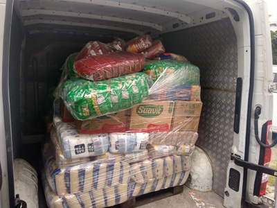 representantes da Fundação entregaram ao Fundo Social mais de uma tonelada de produtos. Foram entregues 160 litros de água sanitária, 500 kg de arroz, 250 kg de feijão 100 litros de óleo, 100 kg de açúcar, 50 kg de macarrão e 100 pacotes de molho de tomate de 340g cada. O Fundo social se encarregará da distribuição para as famílias necessitadas.